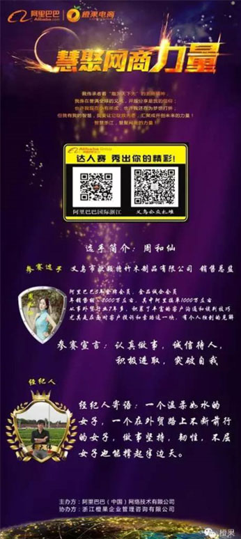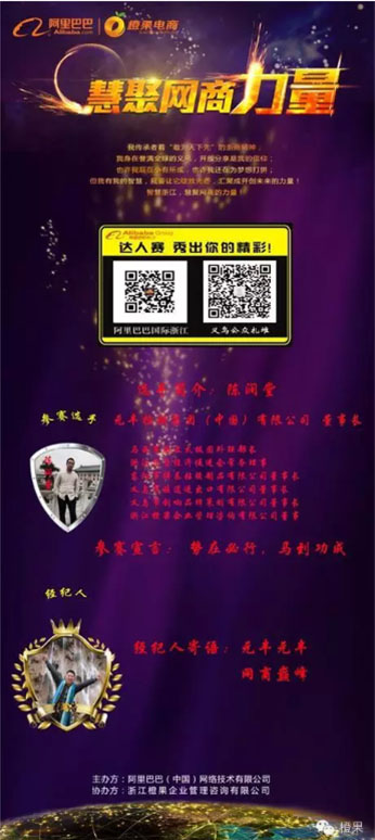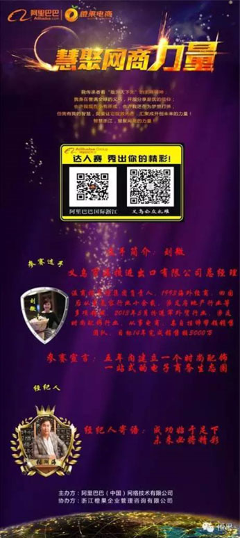 为了打造智慧浙江在外贸网商群体中的认知和影响力,挖掘外贸网商达人及干货,推动外贸电商生态圈发展,促进浙江网商商圈融合,由阿里巴巴(中国)网络技术有限公司主办,浙江橙果企业管理咨询有限公司协办的2014年“浙江网商达人赛(义乌赛区)”于6月12日正式举行。