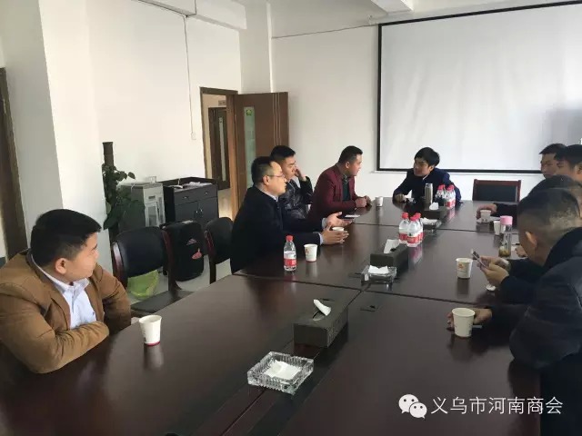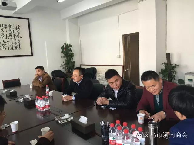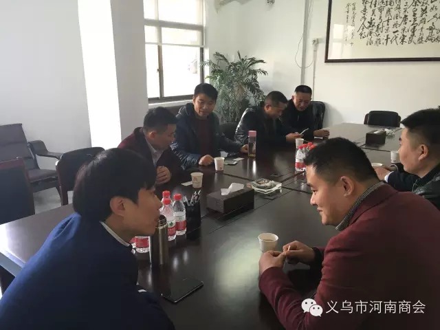 2015年12月4号下午两点钟梁玉臣(义乌市萌光饰品董事长、义乌市河南商会会员)带领河南省鹿邑县产业聚集管委会(党委书记)闫家明前来拜访义乌市河南商会由商会常务副会长梁永立、监事会主席徐少伟、副会长李冠荣和赵运动进行资源管理及各项目对接。对于义乌市河南商会领导们表示非常重视,家乡的领导们来到义乌,走进我们河南人在义乌的大家庭感觉非常亲切、温暖。义乌市河南商会随时欢迎家乡各地方领导前来指导工作。