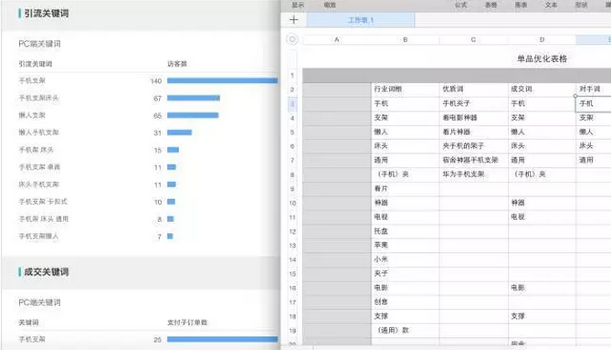 成交词数据,是在生意参谋的经营分析里,找到自己要优化的单品,点单品分析,建议以无线为主。