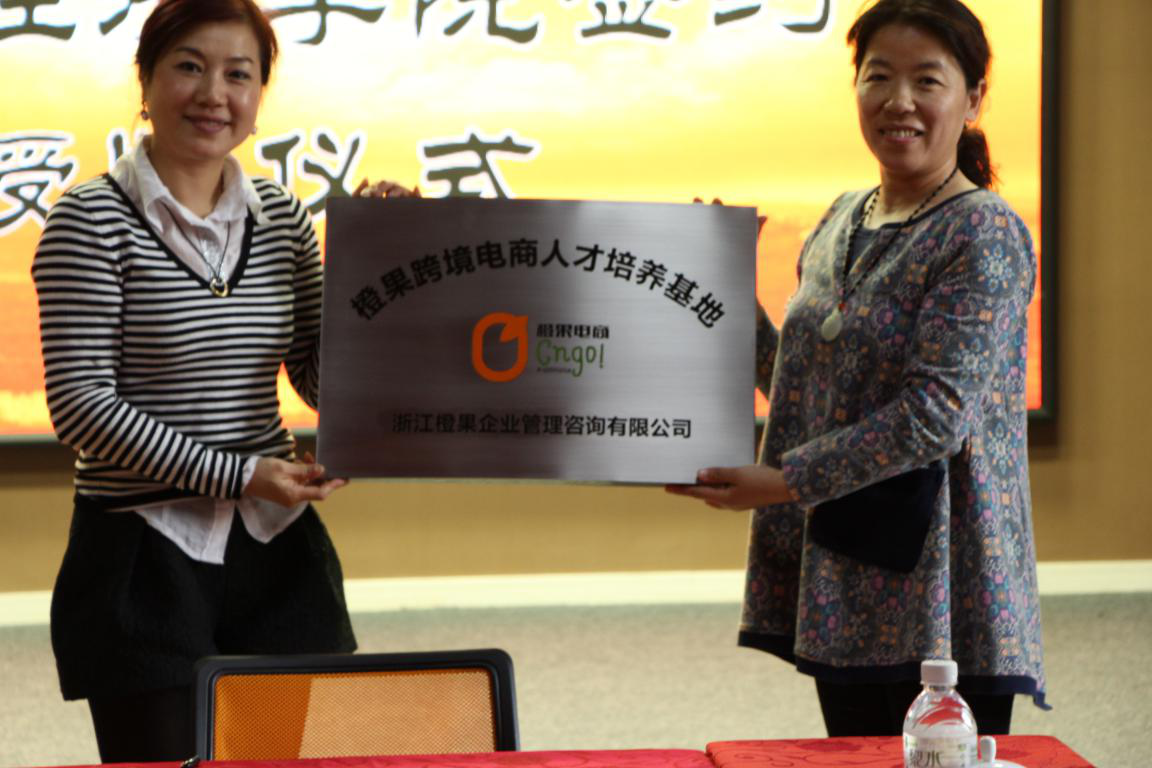 最后,橙果电商总经理刘微和电商教研室主任司凯、国贸教研室主任郑凌霄共同签署了校企合作协议,并与董金玲副院长互授校企合作牌匾。
