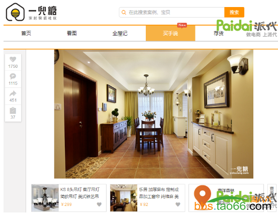 想要做好店铺,必须有自己的一技之长,开车也好,淘客也罢,不能用一贯的思维在一棵树上吊死,必须找到适合自己良久发展的途径,我经常分享直通车是因为我擅长推广,并不是逼着每个人都去做推广,而是希望能给正在开车的朋友一些个人的操作指导经验,想要做好淘宝,就要擅长寻找各种方法各种途径,开不好车想要流量,可以玩玩淘客,找找刷单黑洞,找网红,上上活动,你能想到的,有效果的多去尝试尝试,除此之外,这里给大家再推荐一个推广渠道,针对不同类目推出的app平台,比如说家装类目,有个最近比较火的“一兜糖”,凭借着强大的引流优势占领了一席之地,这个平台到底有什么特点,能如此的火爆起来: