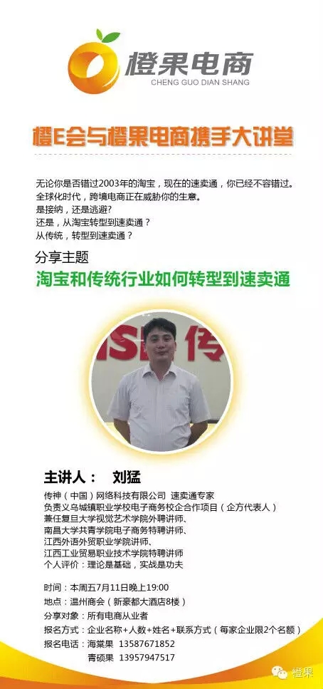 祺商会之橙果电商大讲堂--淘宝和传统行业如何转型到速卖通