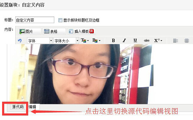 当我们插入图片之后,在点击左下角“源代码”,切换视图,哈哈,这个时候大家会看到一串像英文一样的东西,这就是神秘的代码啦,童鞋们,您找到它了么?