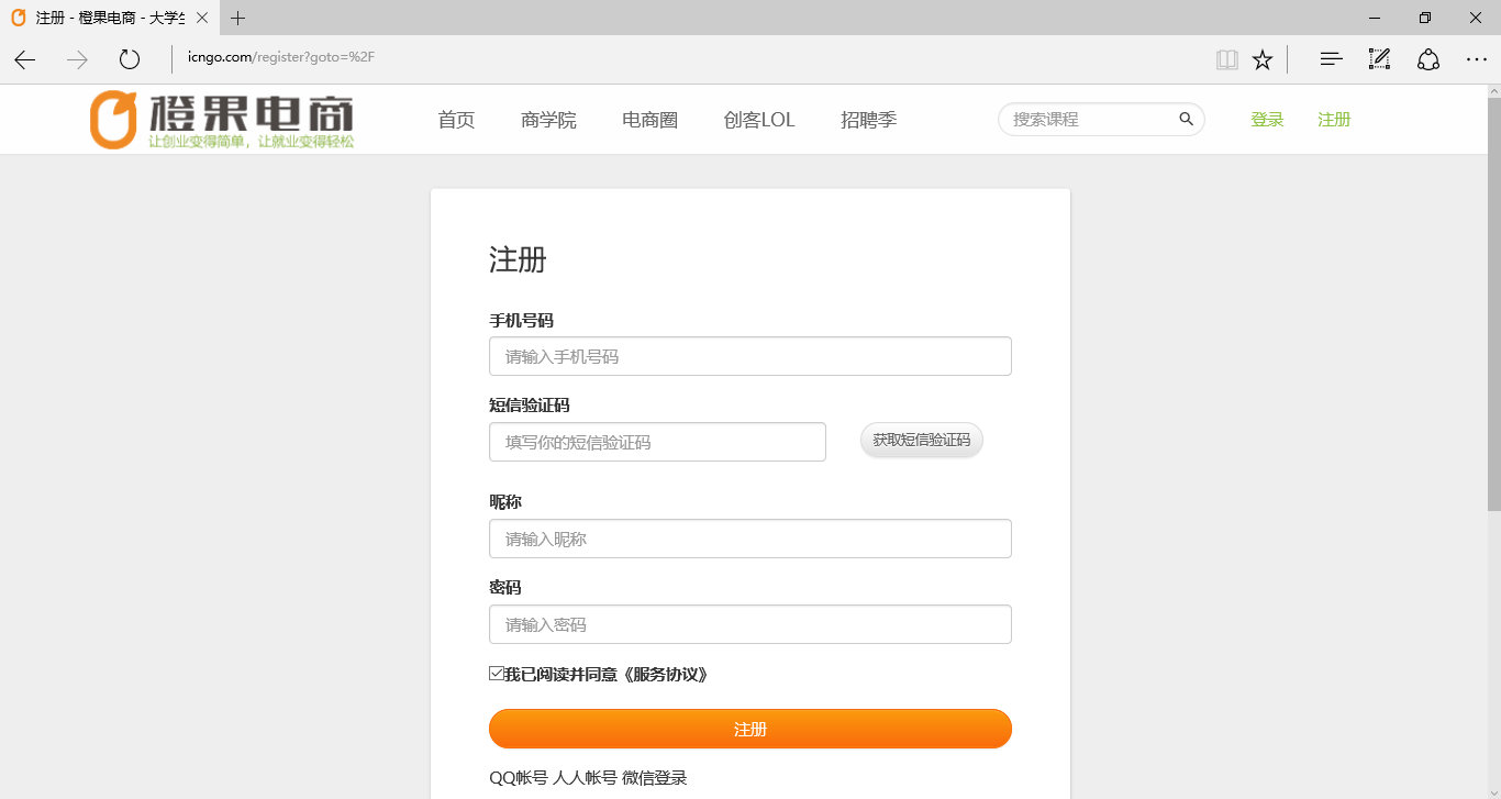 第一步:登入橙果电商官方网站www.icngo.com